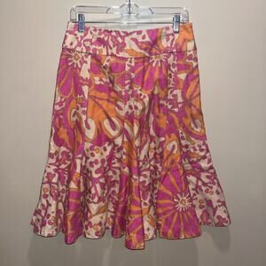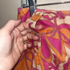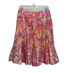 Focus 2000 Women's Linen Pink Brown Orange Abstract Skirt 6 Colorful Eclectic