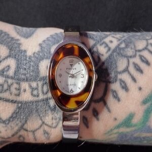Focus 9003 Cuff Bracelet Quartz Analog women's watch featuring a silver and brown design. Perfect for everyday wear with its reliable quartz movement. Measurements shown in photo, all questions welcome!