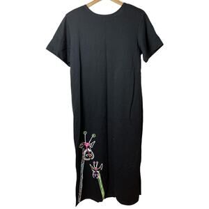 Focus Black Painted Giraffe Short Sleeve Maxi 100% Cotton Dress Women's S NWT