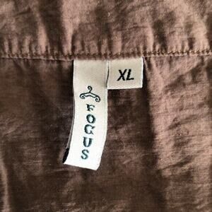 Focus Brown One-Button Open Cardigan Jacket Ruffles 3/4 Sleeve Rayon Nylon Flax
