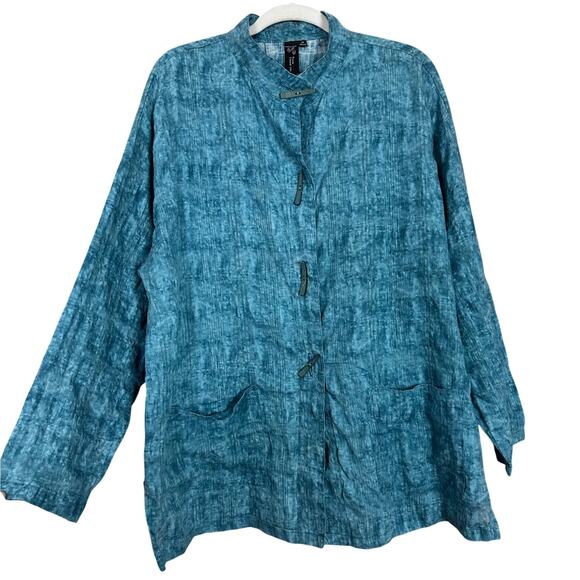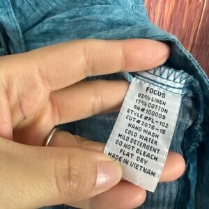 Focus Casual Life Blue Lagenlook Top Button Up Size Medium Oversized