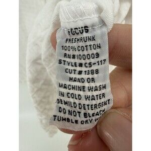 Focus Casual Life Button white textured button up cotton Small S roll tab sleeve