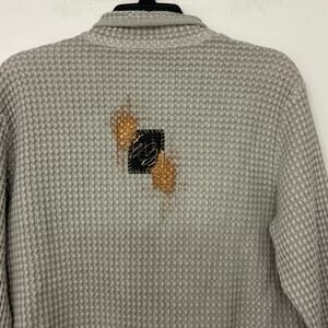 Focus Casual Life Gray Cotton Waffle Knit Embroidered Painted Cardigan Sweater S