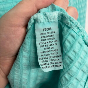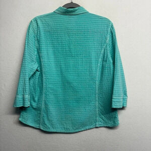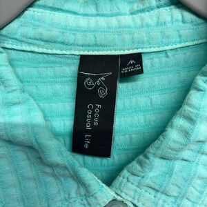Focus Casual Life Textured Stripe Blue Button Down Blouse Shirt M Cotton