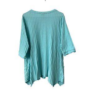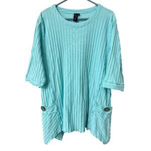 Focus Casual Life Tunic Top Size Medium Asymmetrical Hem Ribbed Knit Lagenlook
