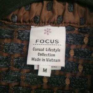 Stylish Focus brown and black textured jacket with button-up front and pockets.