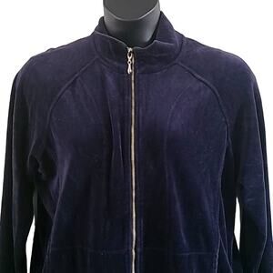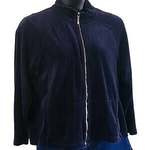 Focus velour jacket, navy blue zip-up jacket, plush velour outerwear, cozy lounge jacket, soft zip-up sweater, comfortable layering piece, stylish casual jacket, relaxed fit coat, warm fall fashion, everyday wear jacket, elegant velour zip-up, classic soft fleece jacket, travel-friendly outerwear, plus-size casual jacket, cozy yet stylish layering.