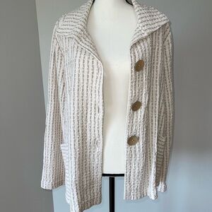Focus size large light weight jacket very neutral and cream colors in color with gorgeous buttons