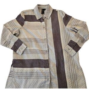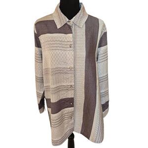 Focus Casual Life Womens Stripe Button Front Textured Shirt Tunic Blouse Gray White Medium