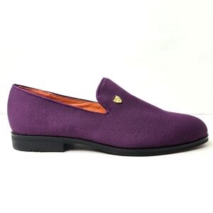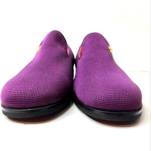 Foevtrue Wally, woven slip-on loafer. Designed in England. Features a cushion insole in vibrant orange and a red accent non-slip sole. They have a heel of 3/4".