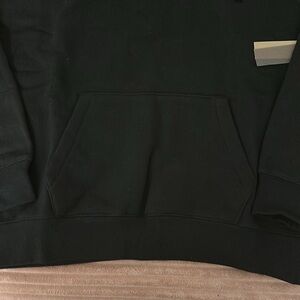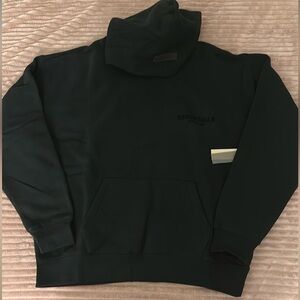 This all-black hoodie is made of brushed back fleece, and it features everything from an oversized fit with sleeves that are slightly longer than usual to an attached hood that has a rubberized Fear of God logo on it. It also has a small "ESSENTIALS" graphic on the left chest on the front, along with a much larger version of the graphic on the back. It's topped off with ribbed cuffs and a ribbed hem that have been added for extra comfort.