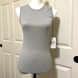 This soft, full-coverage tank knows how to hold the line. All-over ribbing and four-way stretch fabric offer just the right cling to keep the hemline where you want it—Its versatility is a wardrobe staple! This tank is incredibly soft with figure-flattering vertical ribs along with broader shoulder coverage, a full-length hem, and smaller armholes—all of which make it a go-to choice for wearing alone or as the base of your layered look.