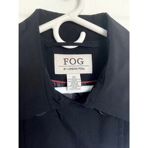 Super cute Fog by London Fog Black Double Breasted Trench coat looks practically new no flaws I can see except missing the waist tie. Love this piece it’s classic!
