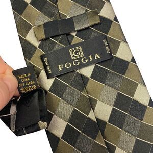 Foggia Silk Neck Tie Black Grey Green Diamond Pattern