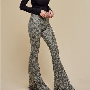 Metallic Snake Skin Python Print Metallic Bell Bottom Flare Pants