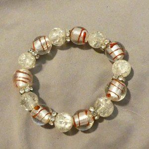 Foil Glass Bracelet Stretch Rhinestones, Silver Brown, Holiday