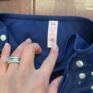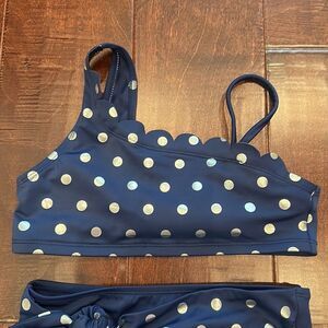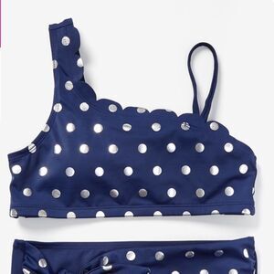 Foil dot scalloped one shoulder bikini