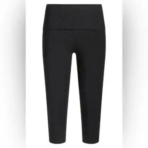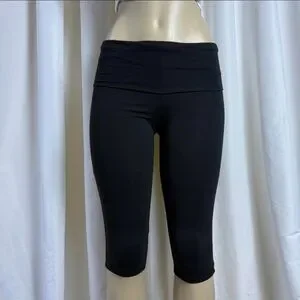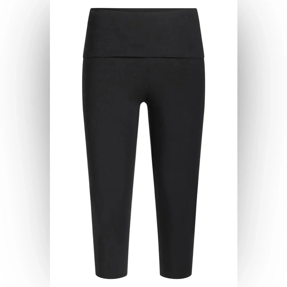 Black Cotton Fold Over Capri Leggings