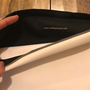 This holds so much. It's like a soft plastic-list material. Wonderful condition. Originally described as a gym clutch but could be used in many settings. Says: Live the Process. No trades.