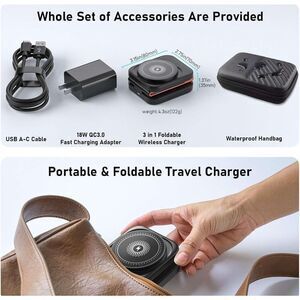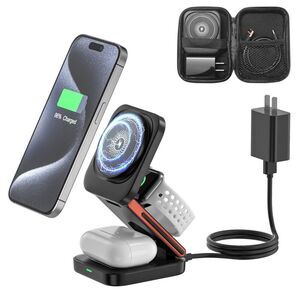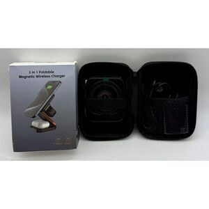 Foldable 3-in-1 Magnetic Wireless Charging Station Black With Carrying Case