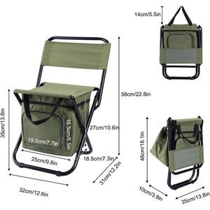 Foldable Chairs for Outside Portable Fishing Chair with Cooling Bag Folding Camping Chair with Storage Bag Lightweight Picnics Stool for Camping Fishing Sporting Events, Concerts, Festivals, Tailgating (Color : Green)