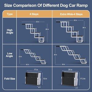 Extra Wide Dog Stairs for Large Dogs, Foldable Dog Ramp for Car with Non-Slip Surface, Dogs Stairs for Cars, High Beds, Truck, Supports up to 250 lbs, 4 Steps