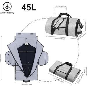 45L Foldable/Convertible Garment Bag with Removable Backpack & Shoulder Straps, Suit Bag with Separate Shoe Compartment