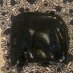Cute little foldable black flats w/ carry case purse. Like a snakeskin pattern. These are NOT all day wear shoes, they are ‘my shoes got wet and I need a dry pair’- or- ‘I don’t wanna wear my cute expensive flats from my car to the office flats’. Size says 37, I would say they are like 6.5’s