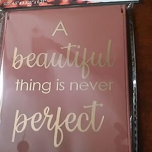 Pre-owned in new unused condition. The mirror is 4.5 inches by 3.625 inches by .25 inchrs.The mirror is pink with the words A beautiful thing is never perfect. The mirror will stand alone.Great for in the purse or travel.