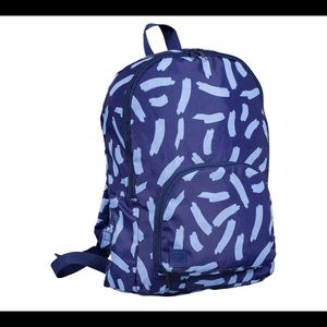 Sturdy 20L capacity bag, ideal when your on the go , is made of water resistant rip stop fabricated features a stylish blue on blue print and strong shoulder straps.