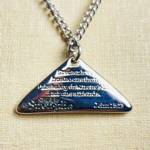 The Folded Flag Stainless Steel Greater Love Reversible Pendant Necklace by Shields of Strength is a 24" necklace featuring a pendant with a theme of love. Made from stainless steel, the pendant is reversible, allowing for versatility in styling. This necklace is a meaningful and stylish accessory that can be worn for various occasions to show appreciation for love in its many forms.