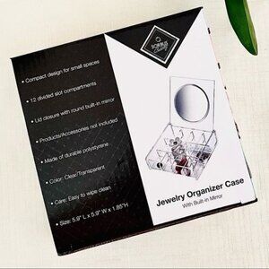 Sorbus Beauty's Folding Jewelry Organizer Case, designed for travel, dorm room, desk, dresser or bathroom use, features a built-in mirror and 12 divided slot compartments. Clear, durable polystyrene with a built in mirror.