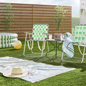 Folding Lawn Chair – Hearth & Hand Magnolia – Cream Green Blue Webbed