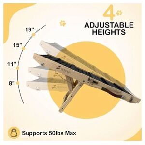 Folding Ramp Small Dogs Cats 19" Adjustable Heights Non-Slip Surface Wood NEW