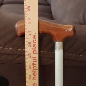 Shaft is metal with a wood handle. Also has slip resistant rubber tip.
