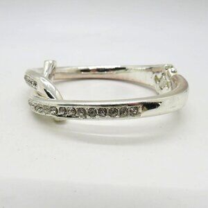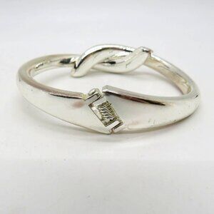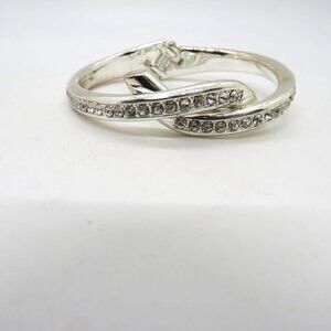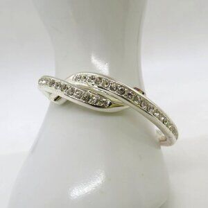 Foldover Bracelet Silver Tone Rhinestone Knot Bangle Hinged Closure - Preowned