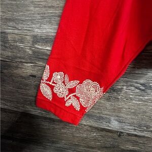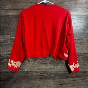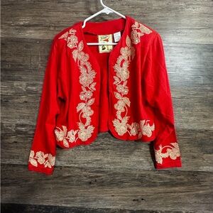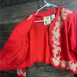 Folette Elegant Red and Gold Cropped Blazer Jacket with Ornate Embellishments