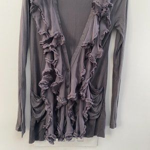 Foley + Corinna Gray Ruffle Front Cardigan W/ Pockets Sz S