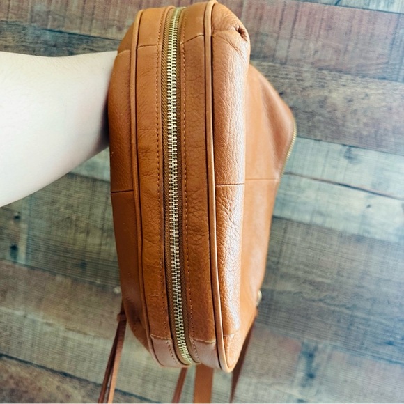 Stylish and versatile tan leather crossbody bag. Perfect for everyday use. Elevate your outfit with this chic accessory.
