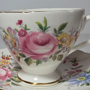 Foley Teacup and Saucer Mother Pink Roses Vintage