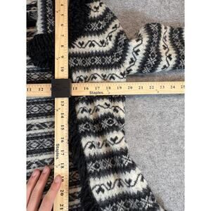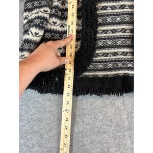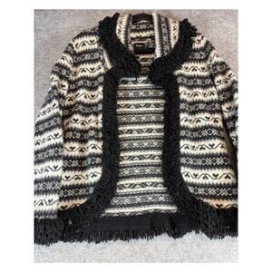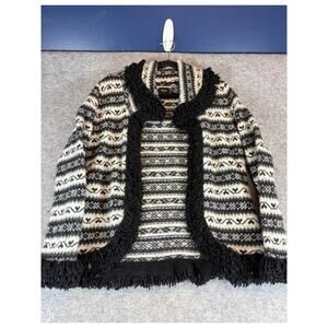 Folia Fair Isle Cardigan Sweater Womens Large Black White Fringe Lamb Wool Blend