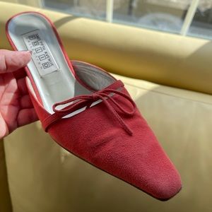 •Saks Fifth Avenue mules with bow detail