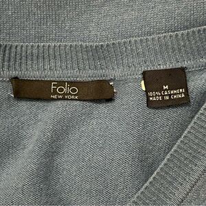 Folio New York Mens 100% Cashmere Sweater M Baby Blue V-Neck Quiet Luxury Preppy