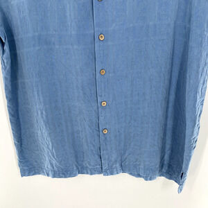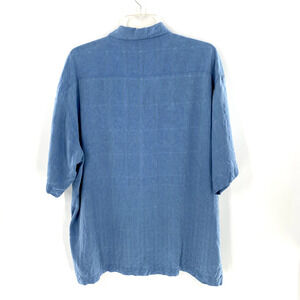 Folio New York Mens Silk Button Front Shirt Hawaiian Short Sleeve Blue Sz XL