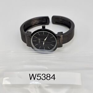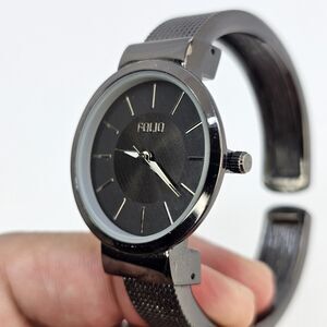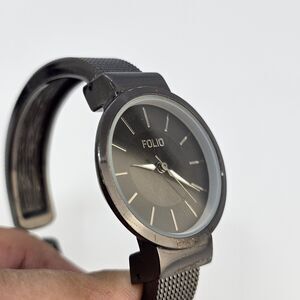 Folio Women's Cuff Watch 32MM Black Dial Black Bracelet Band 5.5" New Battery