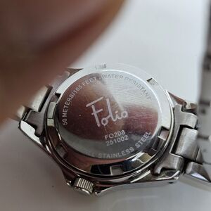 Folio Women's Watch 26MM Gray Tone Case Bracelet Crystal Bezel 5.75" New Battery