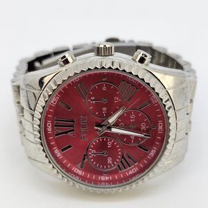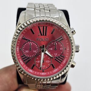 Folio Women's Watch 38MM Dark Pink Dial Gray Bracelet Band 5.5" New Battery