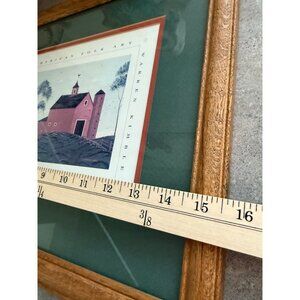 American Folk Art Framed Print By Warren Kimble The Red Barn Farm House County Decor Green Matte & Oak Frame Vintage Certificate Number 122 Wall Hanging Primitive Style Americana Signed