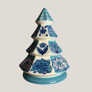 Folk Art Glazed Hand-Painted Ceramic Christmas Tree Turquoise