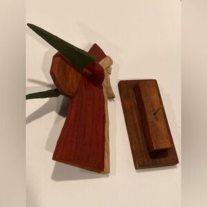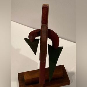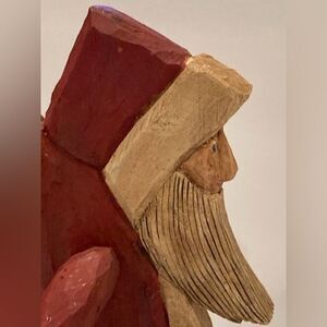 Here is an awesome folk art inspired wooden Santa figurine. This style would be called a whirly gig. The arms adjust and one should be up and the other down and then they could move in the wind. The Santa also rotates on the stand. This one seems hand carved and painted, but no signature. It’s also fold art similar to N Thomas, but this isn’t her work. No identifying labels. About 13” in height. Nice condition for its age. Thanks for looking :)